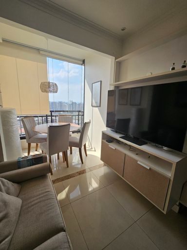O imóvel conta com sala espaçosa para dois ambientes, integrada à sacada, garantindo luminosidade e ventilação natural. A cozinha funcional facilita o dia a dia, enquanto a área íntima oferece dois dormitórios, sendo uma suíte, além de banheiro social bem distribuído e arejado.