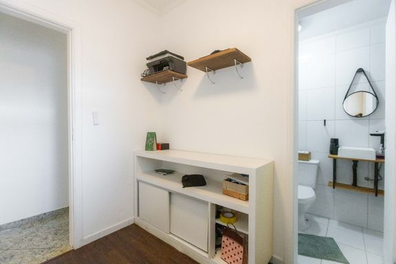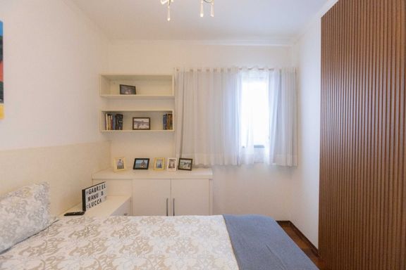 Venha visitar esse lindo apartamento todo reformado. A planta original são 3 dormitórios e dependência de serviços completa, hoje após a reforma, um dos quartos se transformou em uma lindo closed e o quarto de serviços em escritório. Possui sala para 2 ambientes, sacada mobiliável, cozinha com armários, quartos com armários, garagem demarcada e depósito na garagem. O Edíficio está localizado a 3 quadras da praia do Embaré.