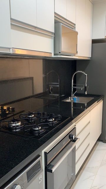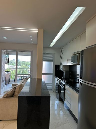 1 Cozinha equipada com armários planejados, integrada à lavanderia
