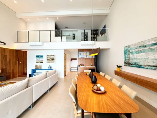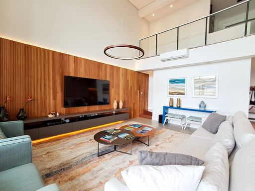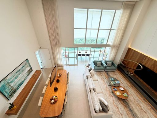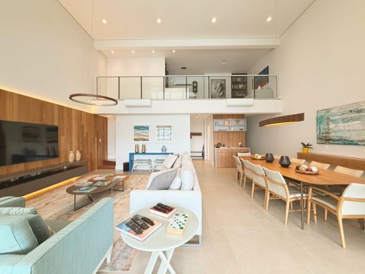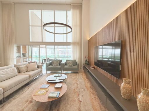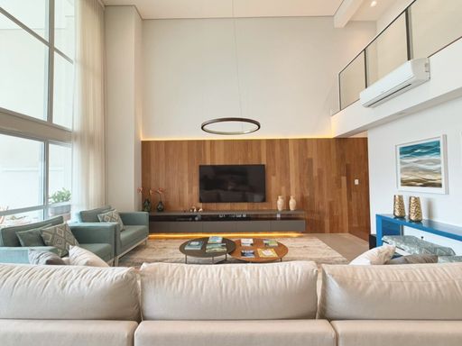 🟢 Magnífico living para vários ambientes, integrado a um imponente pé-direito duplo, que valoriza a iluminação natural e amplia ainda mais a sensação de elegância e grandiosidade.