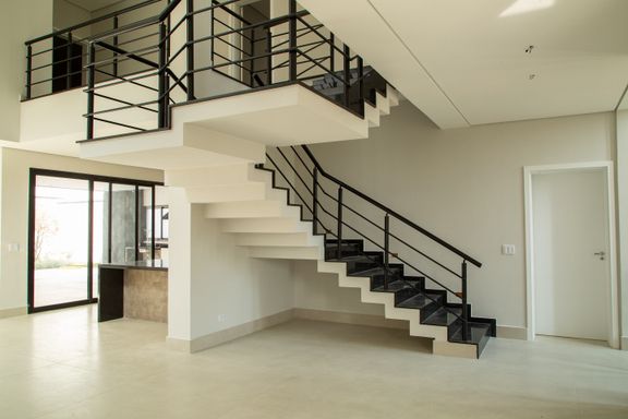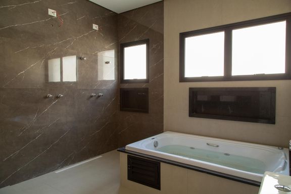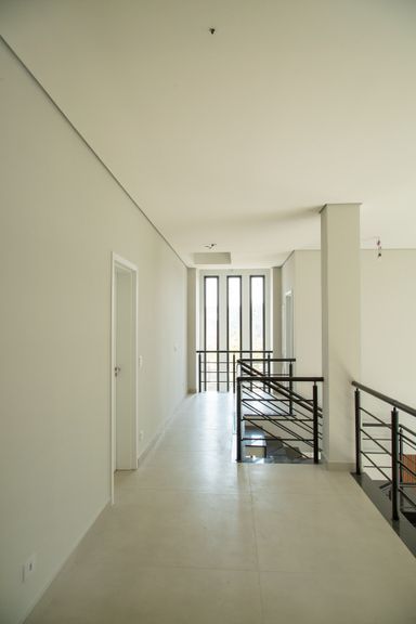 🛌 Pavimento Superior. Um charmoso hall íntimo conecta: 4 amplas suítes com closet, sendo 1 Super Suíte Master, com generoso closet e banheiro elegante com hidromassagem. Todas as suítes contam com: Persianas blackout automatizadas; Infraestrutura completa para ar-condicionado; Tubulações preparadas para gás, elétrica e drenagem; Banheiros com infraestrutura para aquecimento de água a gás ou elétrico.