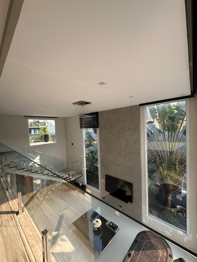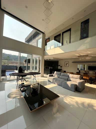 • Sala de estar com pé-direito duplo e iluminação natural abundante