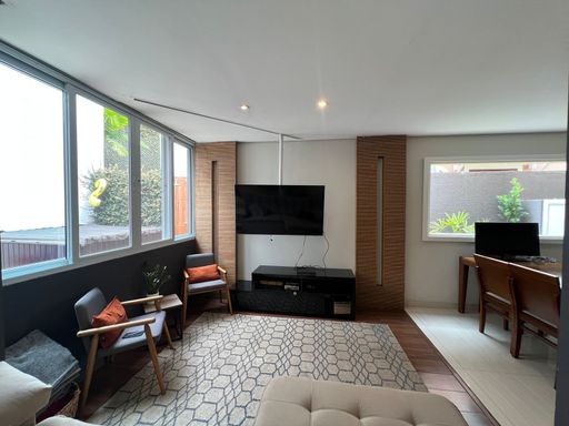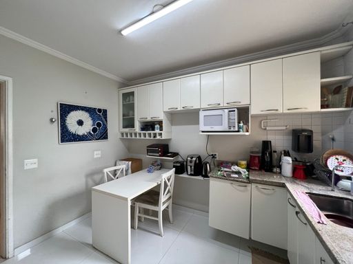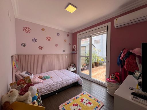 🟢 4 dormitórios, sendo 2 suítes. A planta foi adaptada para maior versatilidade, com um dos quartos criado a partir da antiga lavanderia — ideal como dormitório, escritório ou apoio.
