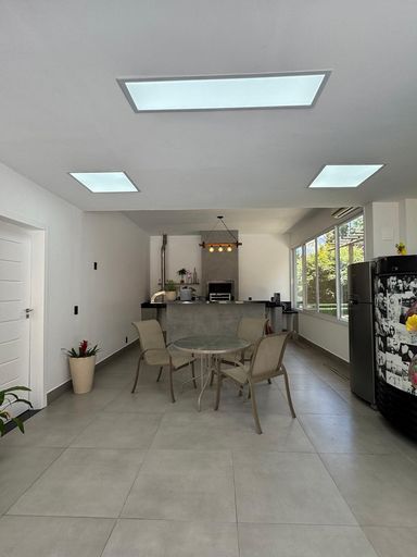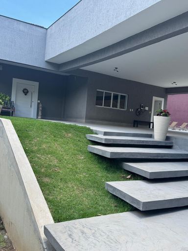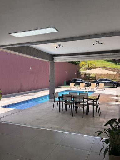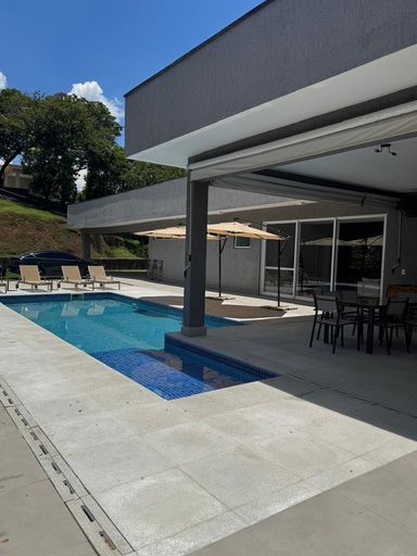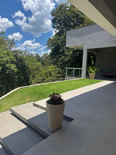 Situada em uma área completamente arborizada, localizada em meio à Mata Atlântica e apenas a 23 minutos do Centro de Alphaville, possui construção privilegiada de áreas integradas de lazer, privacidade e conforto, com vista panorâmica e iluminação natural desde o nascer ao pôr do sol. As áreas internas são privilegiadas com 4 suítes e 3 banheiros sendo 1 interno social e 2 externos para atender área de laser, dispõe de 4 salas sendo 1 de jantar integrada à cozinha, 1 sala de TV, 1 sala com lareira e 1 sala de leitura reservada.