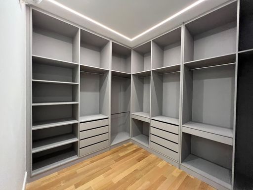 ● Copinha e roupeiro com marcenaria sob medida também no andar superior