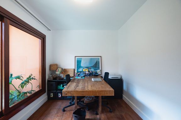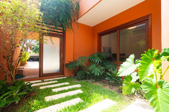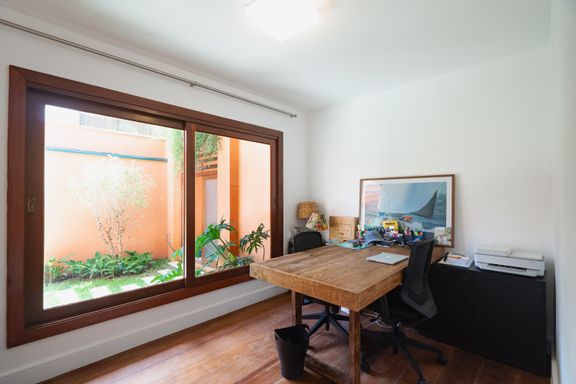 ● Escritório privativo com vista para o jardim lateral. Lazer e Convivência