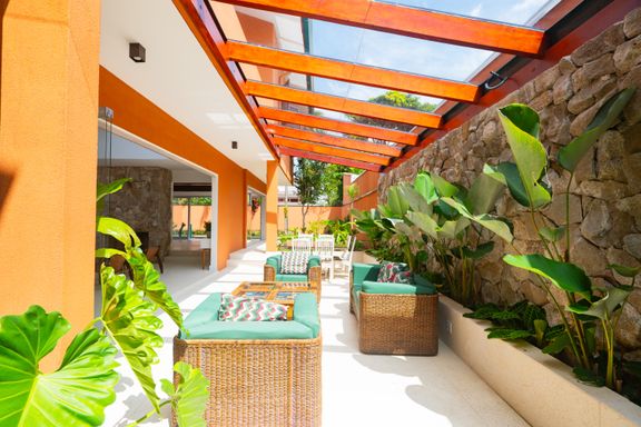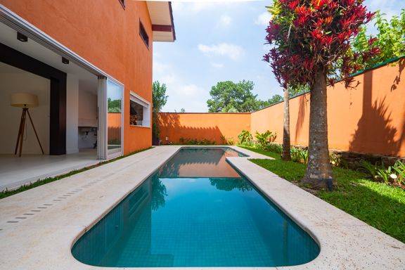 ● Piscina privativa em ambiente reservado e paisagismo tropical