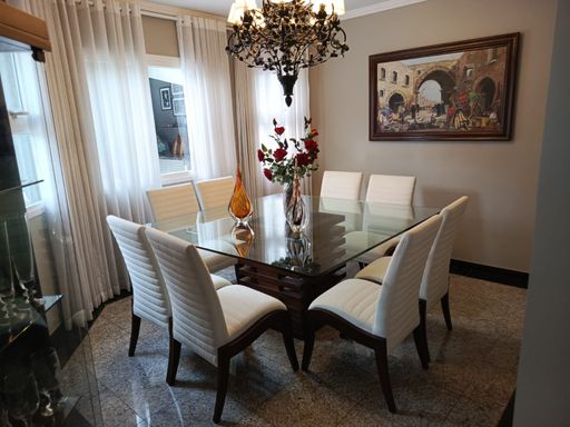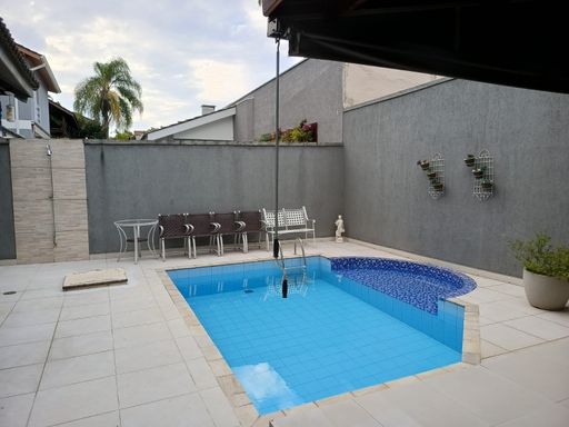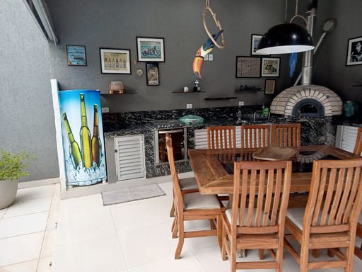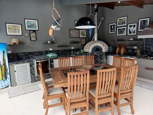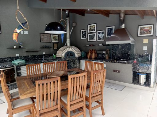 Residencial Alphaville 06, Santana de Parnaíba/SP Casa à Venda com 350 m2 com lazer completo e harmoniosamente distribuída em 2 pisos. A área externa conta com elegante e charmoso jardim com flores, jardim de temperos e mini árvores de jabuticabeiras. Piscina com ducha e excelente espaço de varanda equipada com geladeira, churrasqueira, fogão, mesa ampla para 10 cadeiras, bancada de granito de 8 metros para os mais destemidos chefes gourmet, acabamento de lambril e toldo de proteção solar.