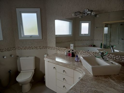 A casa foi planejada para aproveitar o máximo de iluminação natural proporcionando ambientes ensolarados e bem arejados. Está apoiada em estacas Strauss. Pintura recente. Telhas Tegulas. Possui aquecimento solar em todas as duchas e torneiras e lareira ecológica.