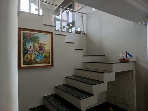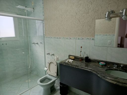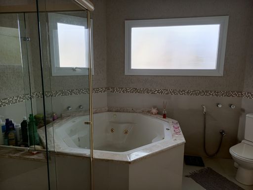 Piso Superior. 3 amplas suítes com bancadas de granito e box já instalados, 1 suíte master com sacada, closet, amplo banheiro com hidromassagem, bancadas em mármore travertino.