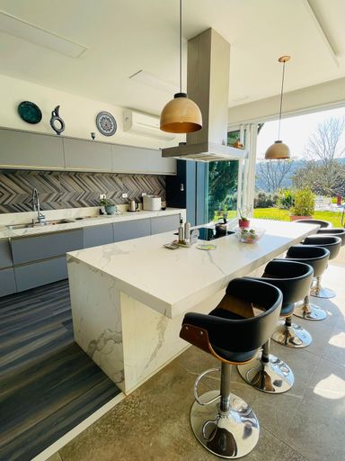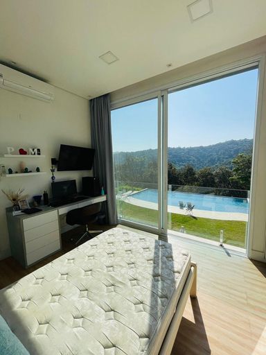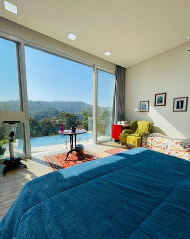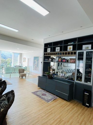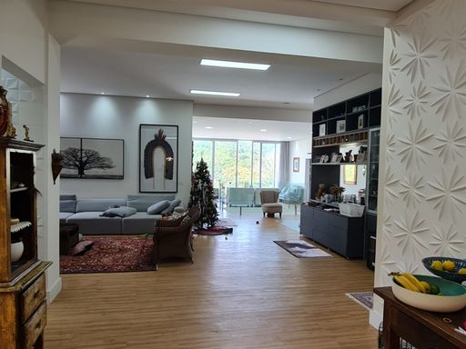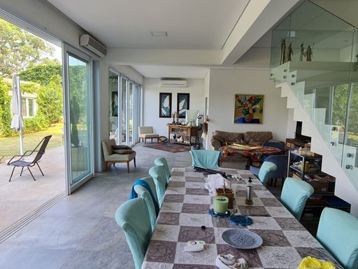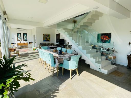 Com design imponente e funcional, esta residência oferece uma experiência de moradia singular, onde os móveis planejados com estilo mantém a elegância da casa em harmonia com a vegetação nativa, permitindo total privacidade. São 3 suítes principais, sendo uma suíte master com closet e vista panorâmica para a mata, além de 3 dormitórios adicionais que compartilham um banheiro elegante, distribuídos em um corredor íntimo de acesso. A área social é um convite ao convívio e à contemplação. A ampla sala com lareira, móveis sob medida, adega iluminada e integração total com a cozinha e copa criam o ambiente ideal para momentos memoráveis.