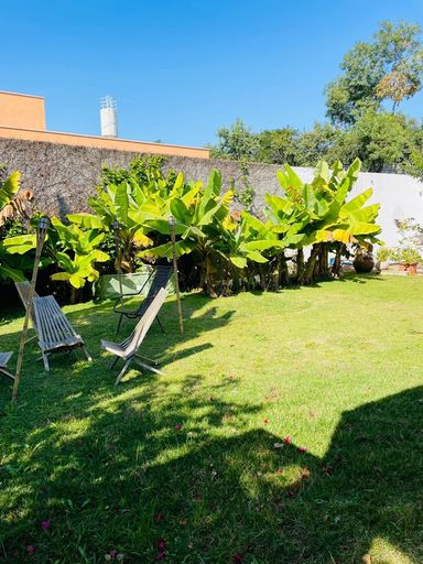 No jardim, a piscina de borda flutuante com iluminação noturna e área de descanso complementa a atmosfera de tranquilidade. Ao lado, um espaço versátil — que pode ser academia, churrasqueira ou escritório — oferece flexibilidade para diferentes estilos de vida.