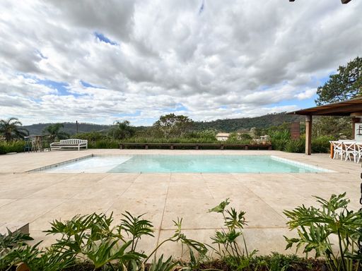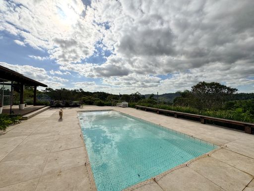 Além disso, o imóvel oferece piscina, canil amplo e áreas externas generosas. A vista é totalmente voltada para uma mata fechada e preservada, proporcionando silêncio, tranquilidade e contato direto com a natureza.