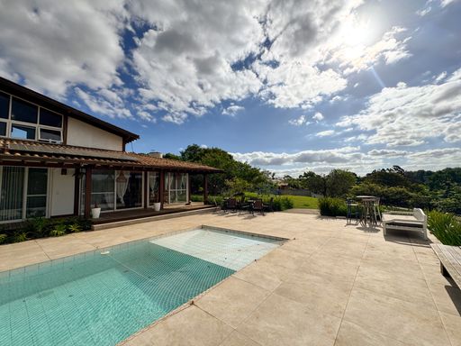 Disponível para locação, esta casa no Residencial Vila Velha, em Alphaville, está em um terreno amplo de 5.427 m², totalmente aproveitável, com vista permanente para a mata nativa e possibilidade de contemplar o nascer e o pôr do sol.
