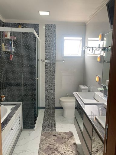 • Todos os ambientes com móveis planejados • Dormitórios com piso de madeira • Salas e escadas com piso em mármore • Demais áreas em porcelanato • Lustres de cristal • Lavabo • 2 cozinhas planejadas • Área de serviço ampla e funcional
